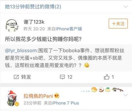 其他更多所谓飞鸟粉也是加入了战斗,在boboka视频下喷的起劲,幸好我辈刀圈的粉丝显然不管战斗力,素质,以及人数都明显占优