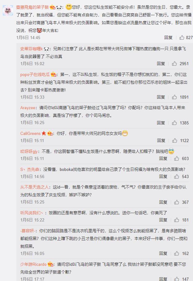 尤其是這位号称是斋藤飞鸟微博超级话题主持人的选手,言辞暴躁,不分青红皂白开喷。