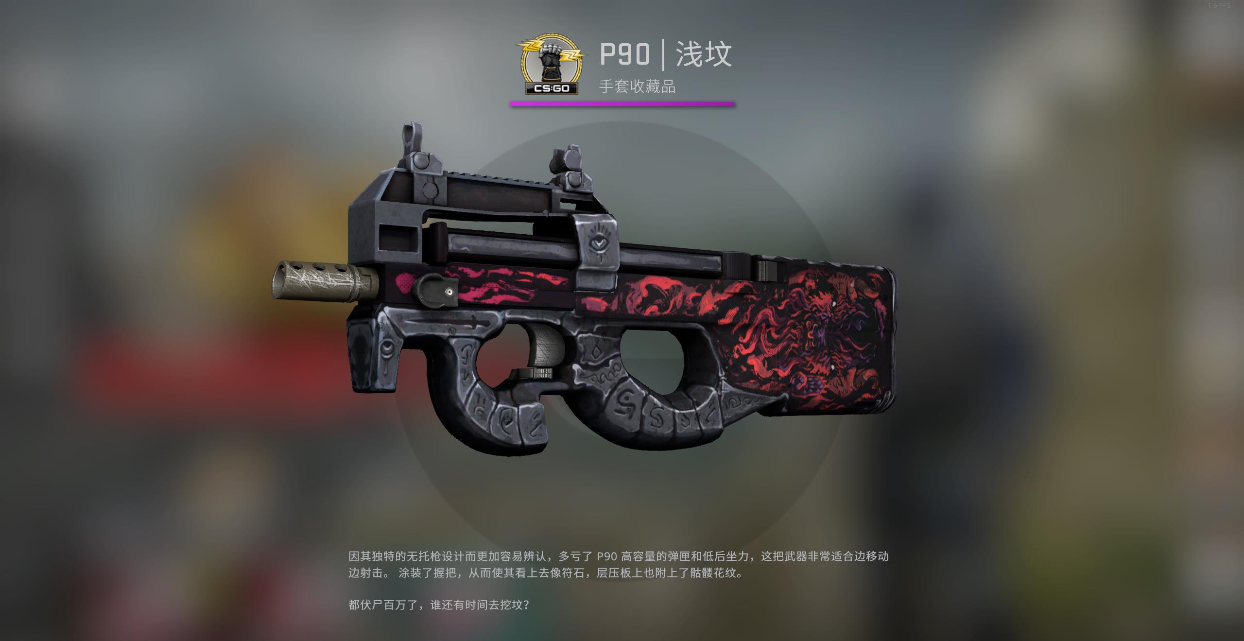 今天给大家推荐一款P90的皮肤——浅坟,这是一款高品质低价位的皮肤,很适合新人入坑和日常换装。